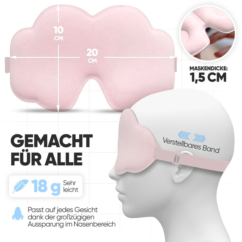 Die Schlafmaske überzeugt mit einem verstellbaren Band, das sich jeder Kopfform anpasst – egal, ob groß oder klein. Das federleichte, hautfreundliche Material sorgt für maximalen Komfort und schont deine Augen, ohne störenden Druck auf die Augenlider oder Wimpern. Mit unserer Nose-Perfect-Technologie passt sie sich zu 90 % perfekt an die Gesichtsform an, sodass keine Lichtstrahlen eindringen.